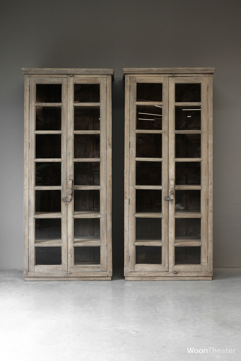 Wij hebben 2 identieke kasten ins ons bezit. De kasten zijn altijd als set van 2 stuks gebruikt, wij bieden de kasten per stuk aan...maar zijn natuurlijk geweldig om als set van 2 naast elkaar te plaatsen.