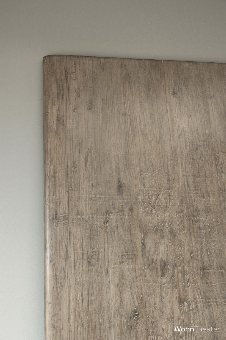 Dit stoere tafelblad is gemaakt van een origineel oude hardhouten deur.