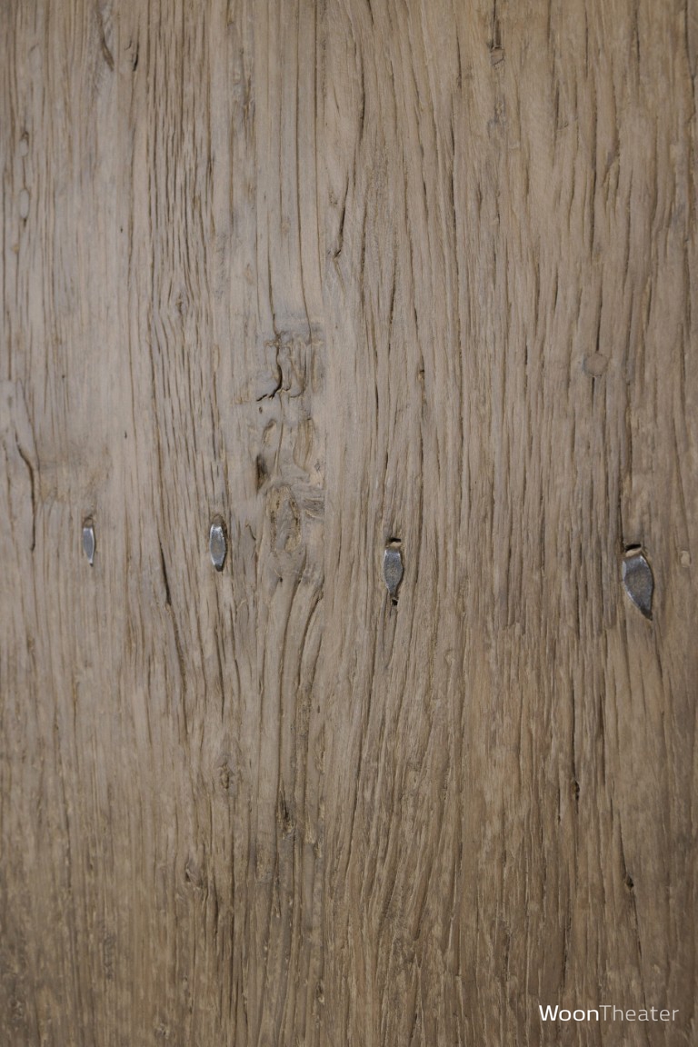 Dit stoere tafelblad is gemaakt van een origineel oude hardhouten deur.